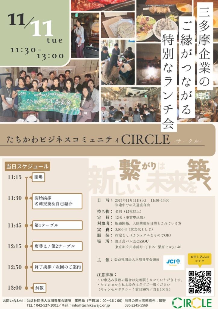 「たちかわビジネスコミュニティ CIRCLE vol.14(夜の部)」 には、多くの皆様にご参加いただき、盛況のうちに無事終了いたしました。