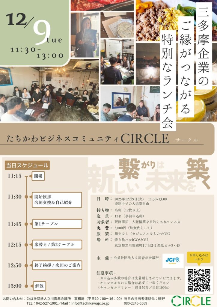 「たちかわビジネスコミュニティ CIRCLE vol.16(昼の部)」**を開催いたします。